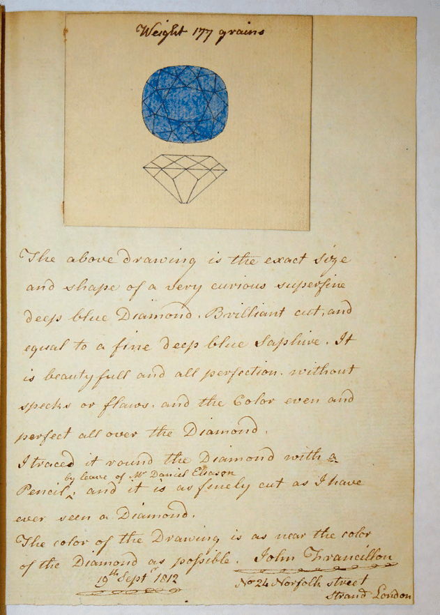 1812 sketch of the Hope Diamond by John Francillon [image source: US Geological Survey Library]