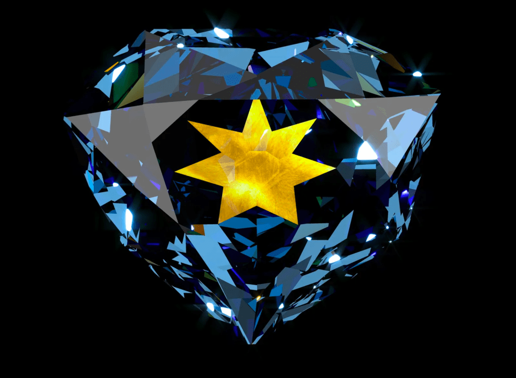A computer simulation of the French Blue with the golden sunburst effect [image source: Smithsonian Magazine]