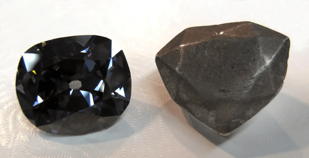 The Hope Diamond (L) compared to the lead cast of the French Blue (R) [image source: Francois Farges via Smithsonian Magazine]