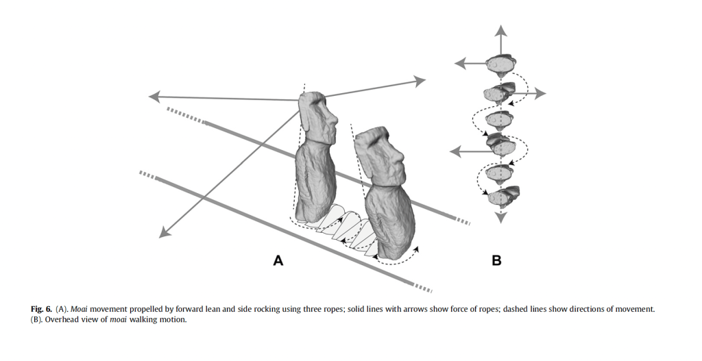 - Lipo, Carl, Terry Hunt, and Sergio Rapu Haoa. “The ‘Walking’ Megalithic Statues (moai) of Easter Island.” Journal of Archaeological Science 40 (2013): 2859-2866. [download available here]